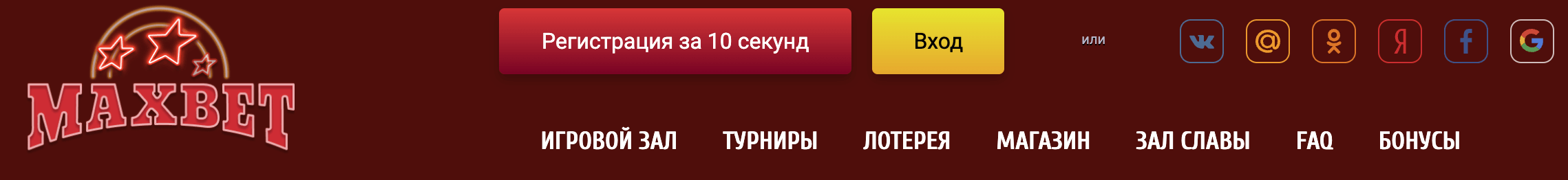 Если у геймера уже есть активный профиль в таких социальных сетях OK, Mail.ru, Facebook, VK или Яндекс, он сможет пройти быструю авторизацию. Для этого следует выбрать соответствующую иконку и произвести вход в личный кабинет, чтобы персональные данные из соцсети синхронизировались с новым аккаунтом в МаксБет.